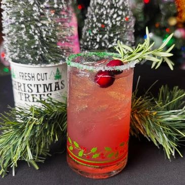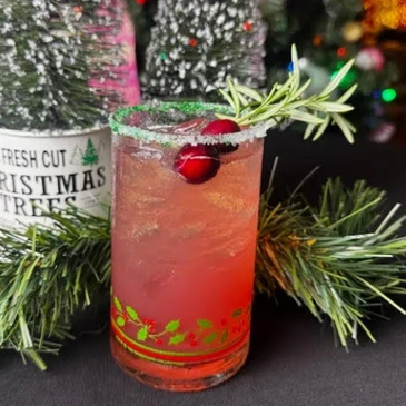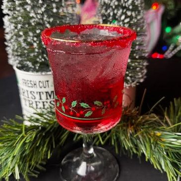 Get Jolly with this smooth pomagranate Vodka concoction! The perfect blend of high end Vodka, Shaken with Chambord rasberry liquor and prosecco. Trimmed on the Rim with festive Red Sugar! Refreshing yet smoothly strong!